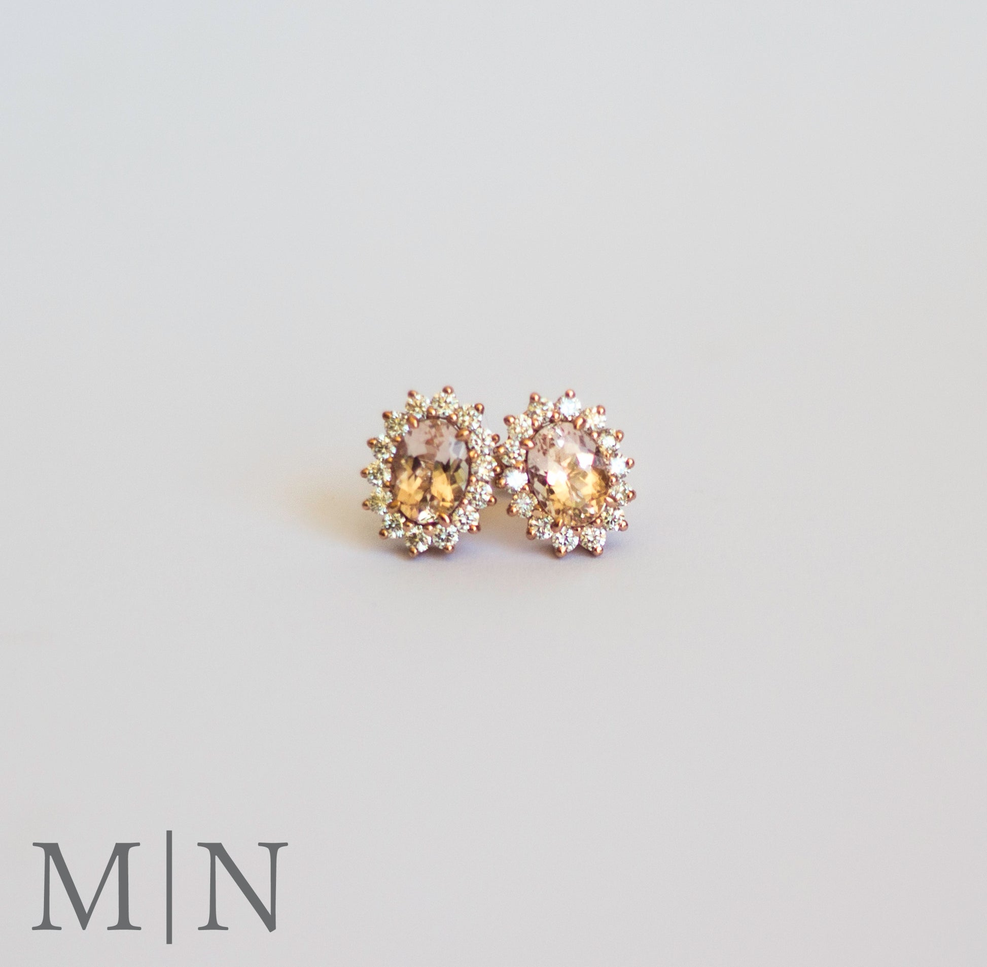 Rose Gold Morganite & Diamond Halo Stud Earrings
