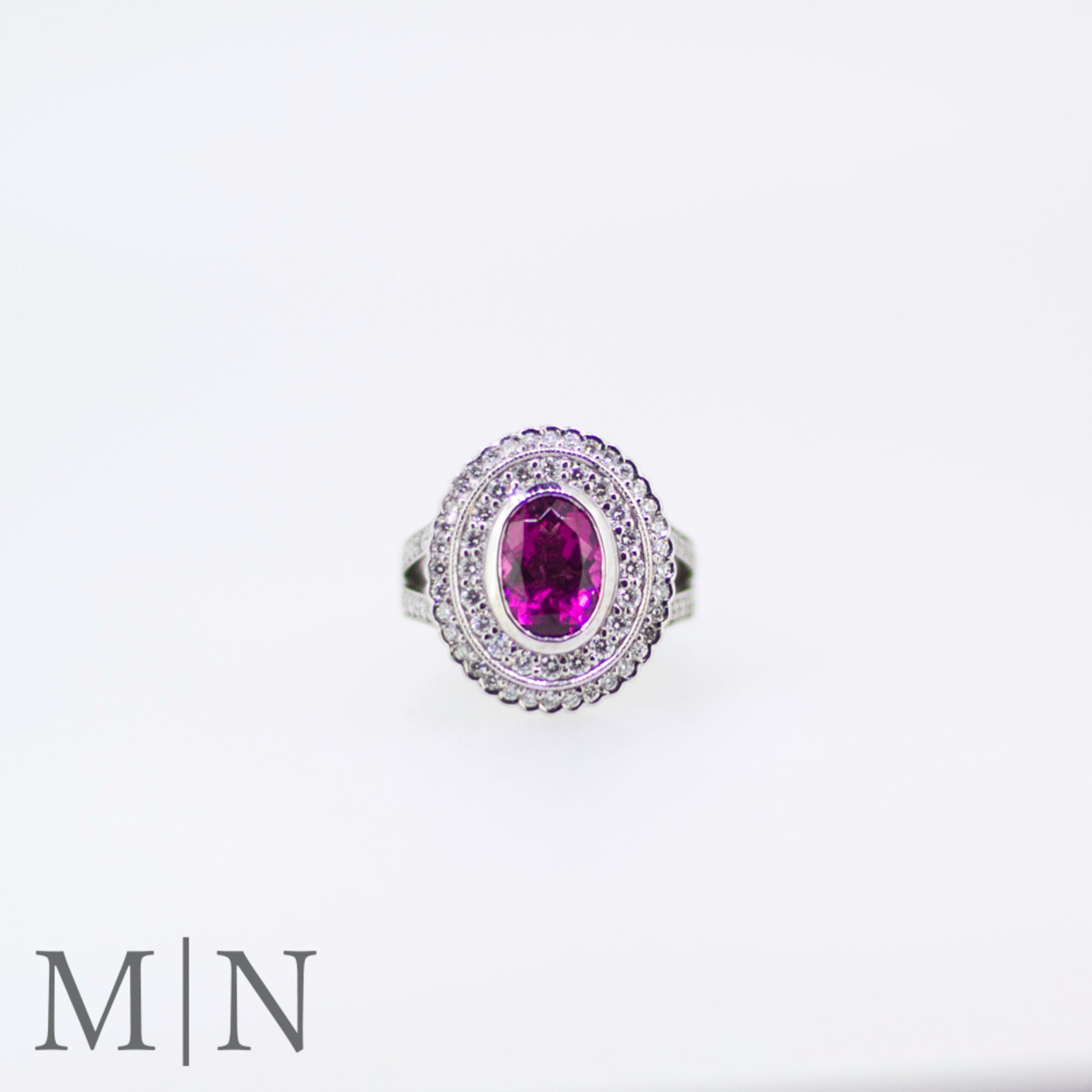 White Gold Rubelite & Diamond Double Halo Dress Ring