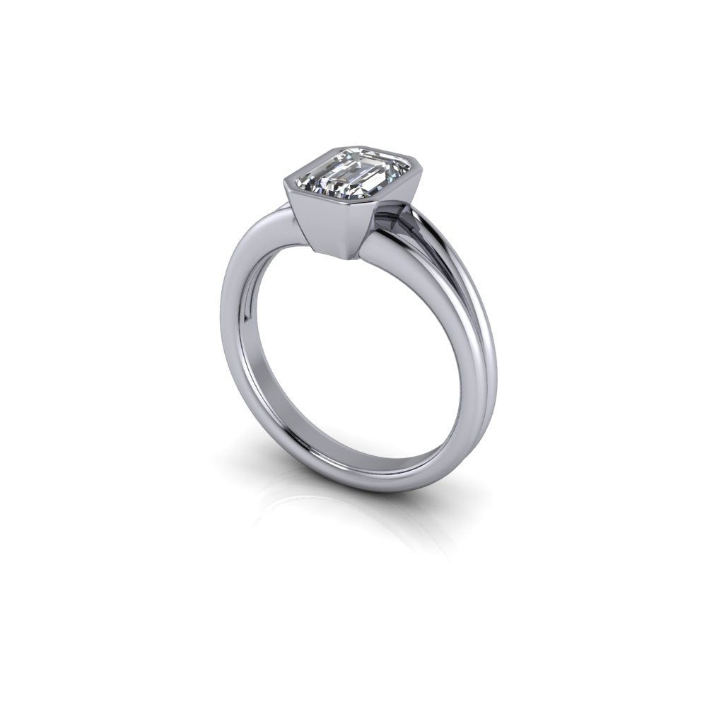 The Ella design is a classic solitaire design showcased here with a Emerald-cut diamond and as with most of our designs, we can manufacture this ring in various metals and with the stone of your choice.