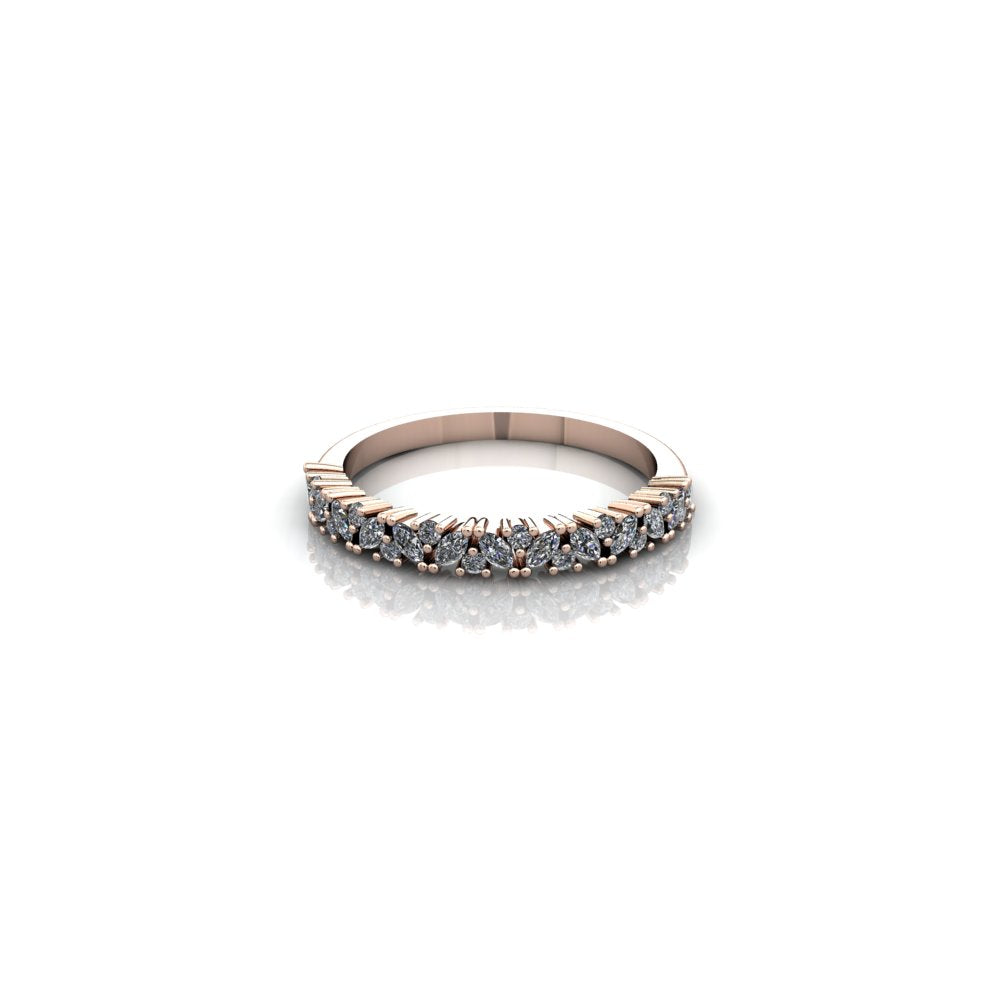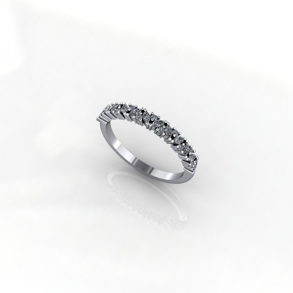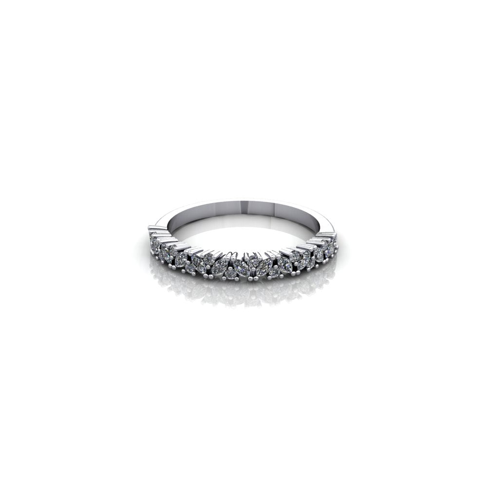 The Ivy is a beautifully detailed ladies diamond band, featuring a delicate pattern of alternating marquise and round brilliant diamonds. Its sculpted silhouette adds dimension and sparkle, making it perfect as a wedding band, anniversary ring, or elegant stackable piece.