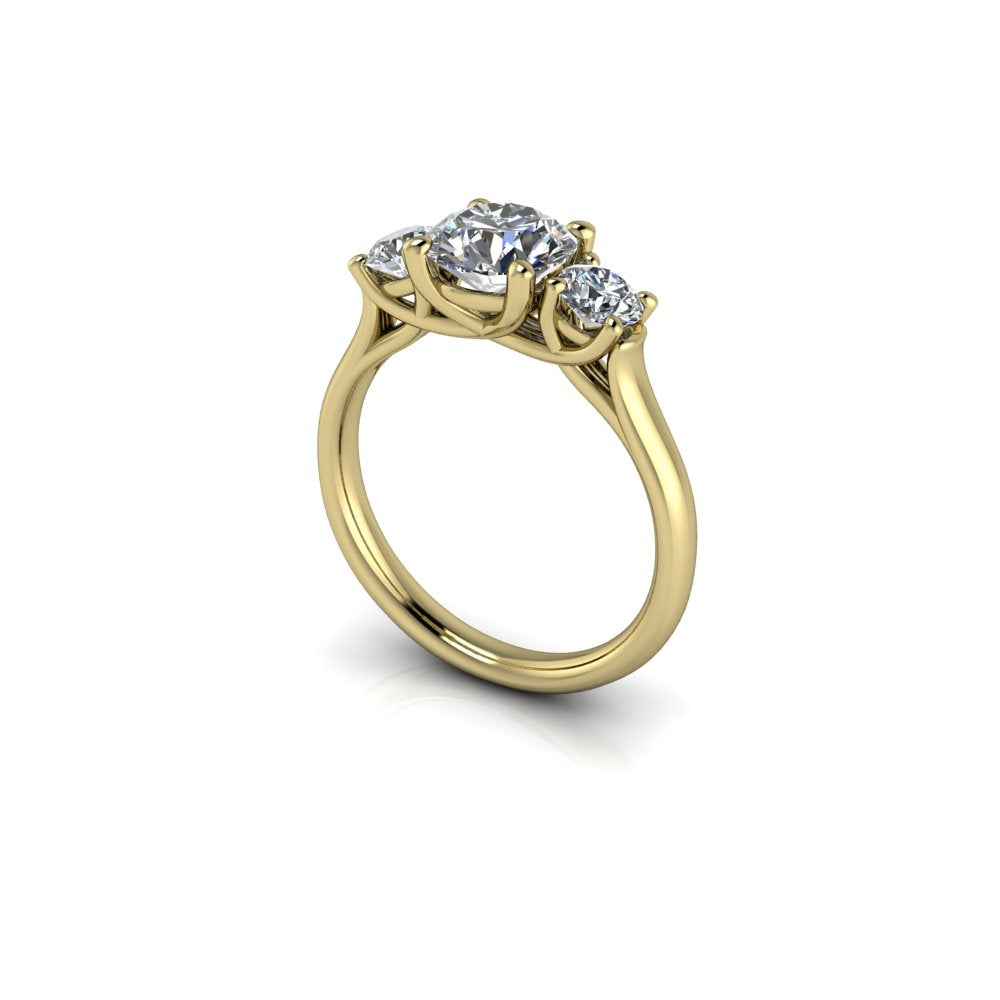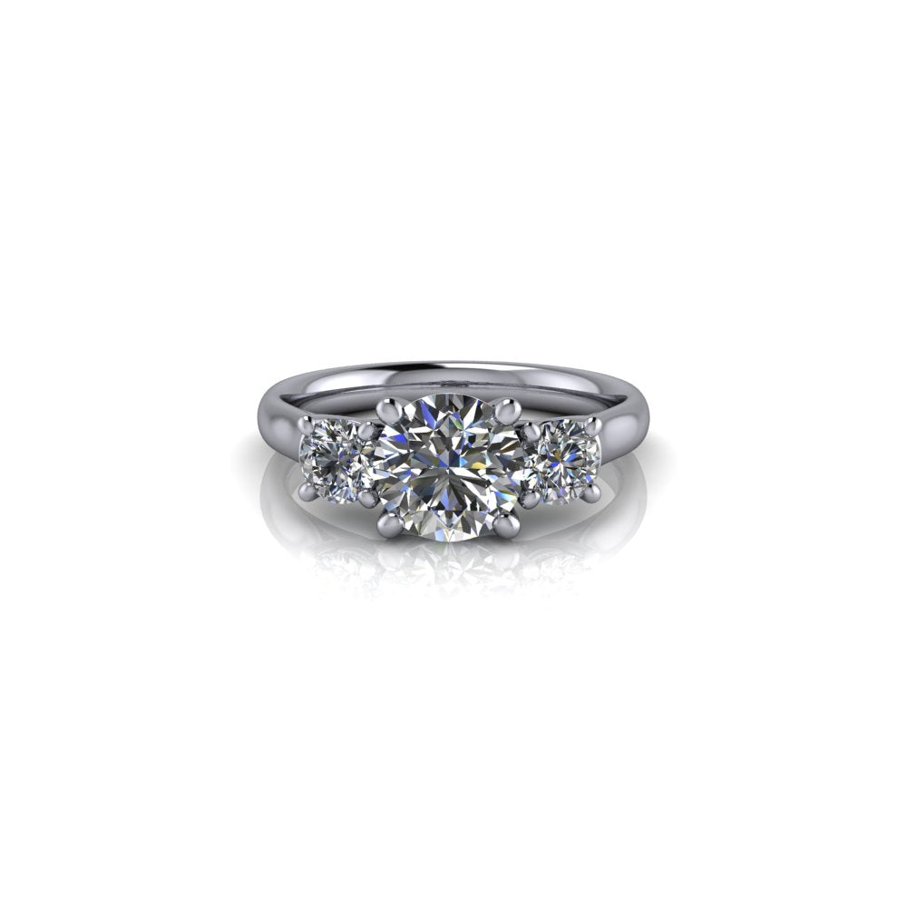 The Olivia design is a classic Three stone design showcased here with a Round Brilliant-cut Diamonds and as with most of our designs, we can manufacture this ring in various metals and with the stone of your choice.