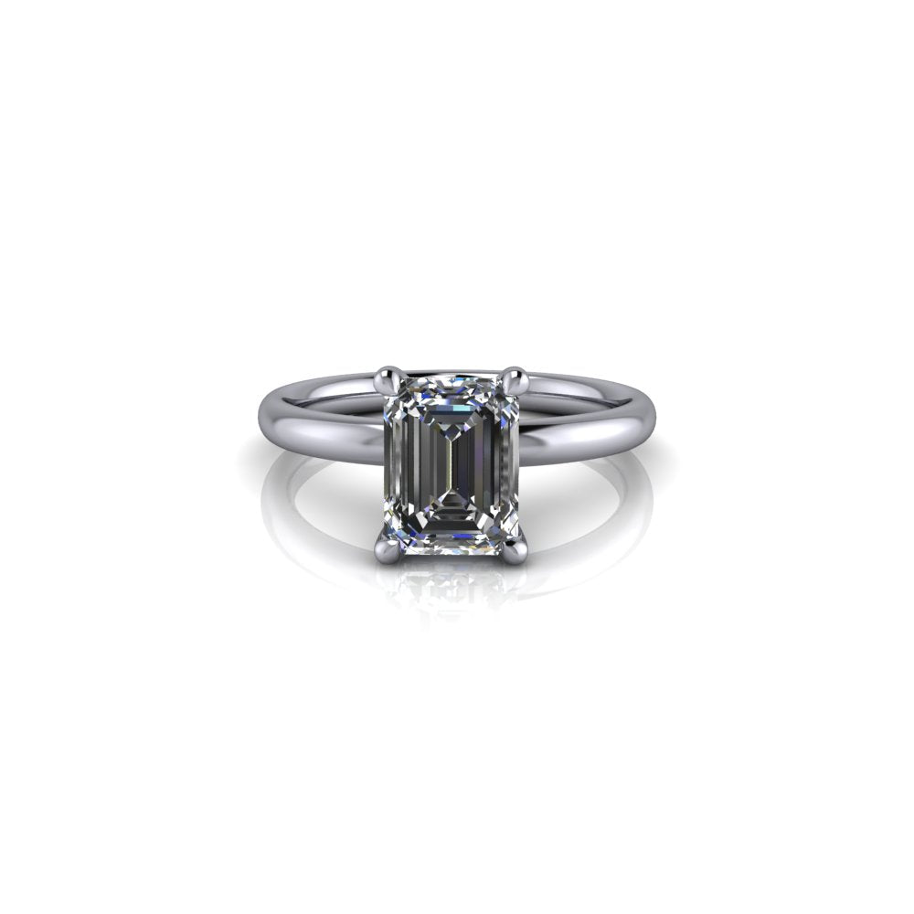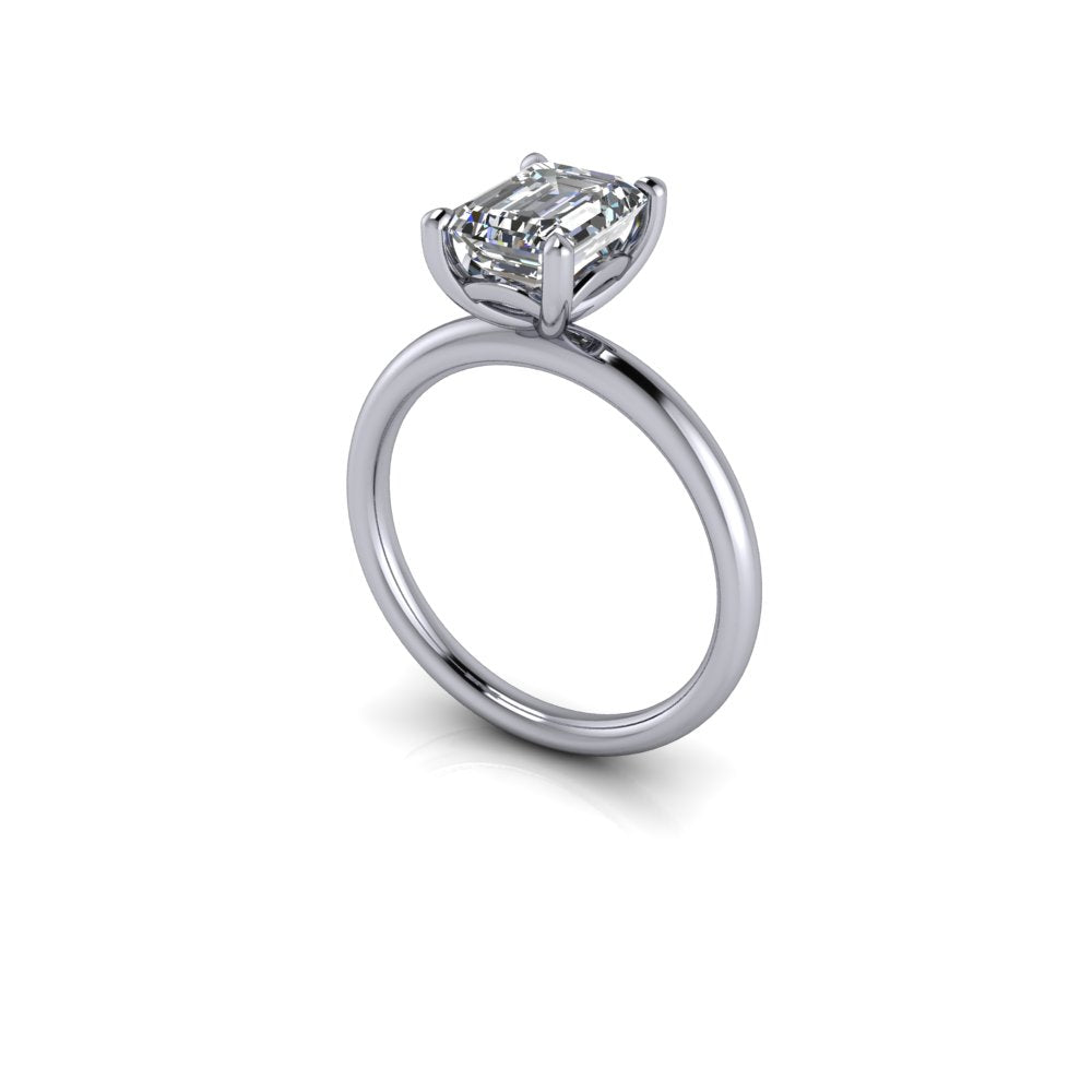 The Sofia design is a classic design showcased here with an Emerald cut Diamond and as with most of our designs, we can manufacture this ring in various metal and with the stone of your choice.