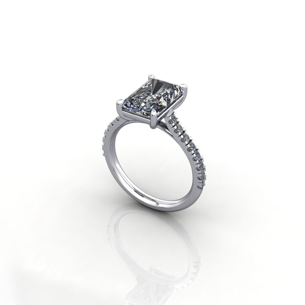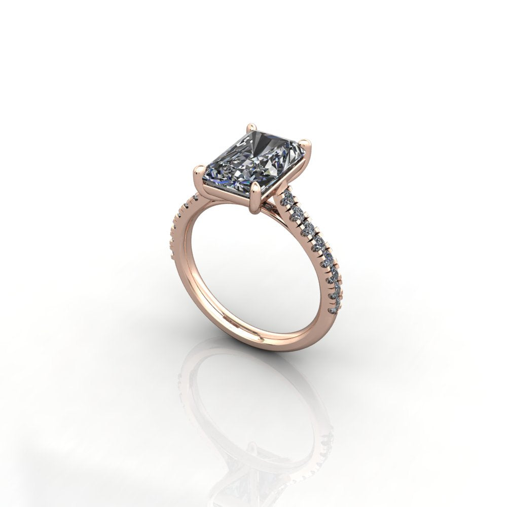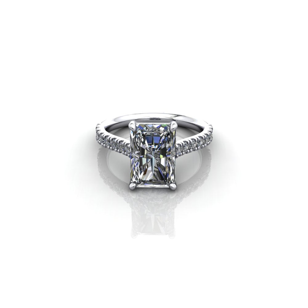 The Sienna is a contemporary take on timeless elegance, featuring a radiant-cut centre diamond held in a refined setting that enhances its brilliance. The delicate pavé-set band adds a subtle shimmer, balancing modern sophistication with classic charm.