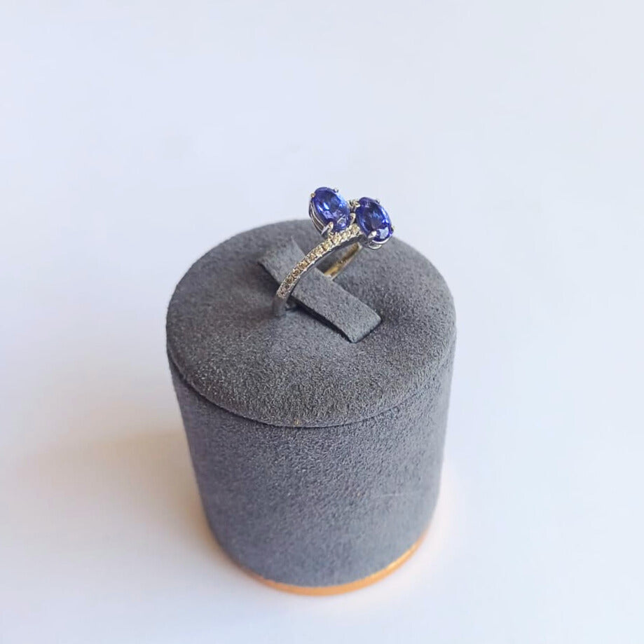 White Gold Twin Tanzanite & Diamond Ring